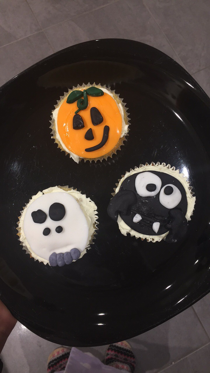 Wee Man adored making his Halloween Cupcakes and loved making his bat, pumpkin and skeleton faces out of fondant.